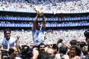 L’immagine di Diego Armando Maradona che alza al cielo la Coppa del Mondo è una delle più iconiche nella storia dello